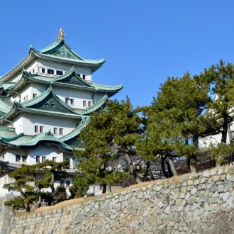 まるで水族館のような大きな窓から名古屋城の木々の、